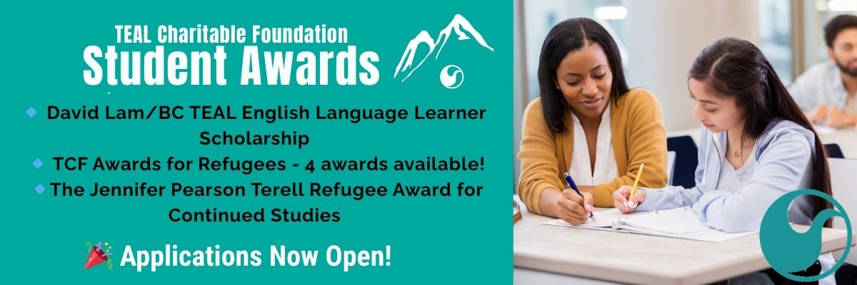 The TEAL Charitable Foundation (TCF) was established by BC TEAL in 1986 and is registered as a charitable organization with Revenue Canada. TCF’s charitable status enables it to engage in fundraising activities. The Foundation supports the teaching and learning of English as an additional language by presenting a number of annual awards and scholarships each year. The TEAL Charitable Foundation’s awards and scholarships are funded through the interest accrued from the TCF endowments which are administrated by the Vancouver Foundation and annual fundraising activities.